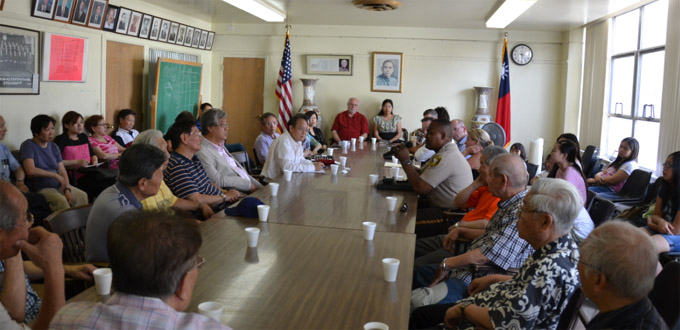 中华会馆主席徐学明、董事长区一平,前主席黄景雄、梅国彬等中华会馆多位董事职员,中美东北总商会会长丘岩律师,中美协进会梅小燕,以及多位华裔社区居民,与警长办公室代表们就中国城治安问题进行热烈交流。