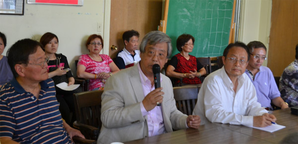中美东北总商会会长丘岩律师(左一)提议:社区应该成立基金会,在警方指导与帮助下,组建自己的治安巡逻队