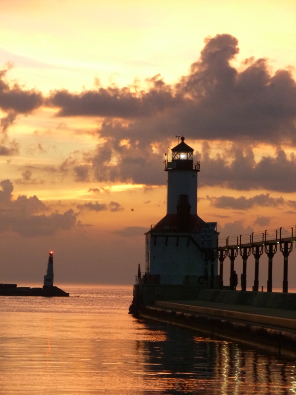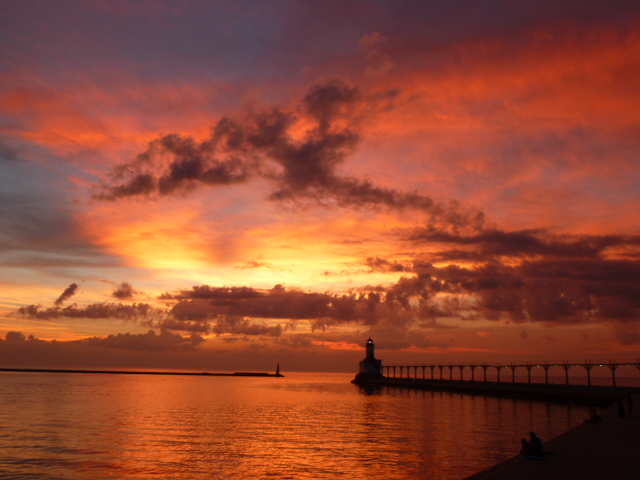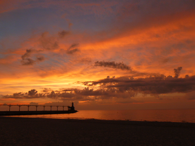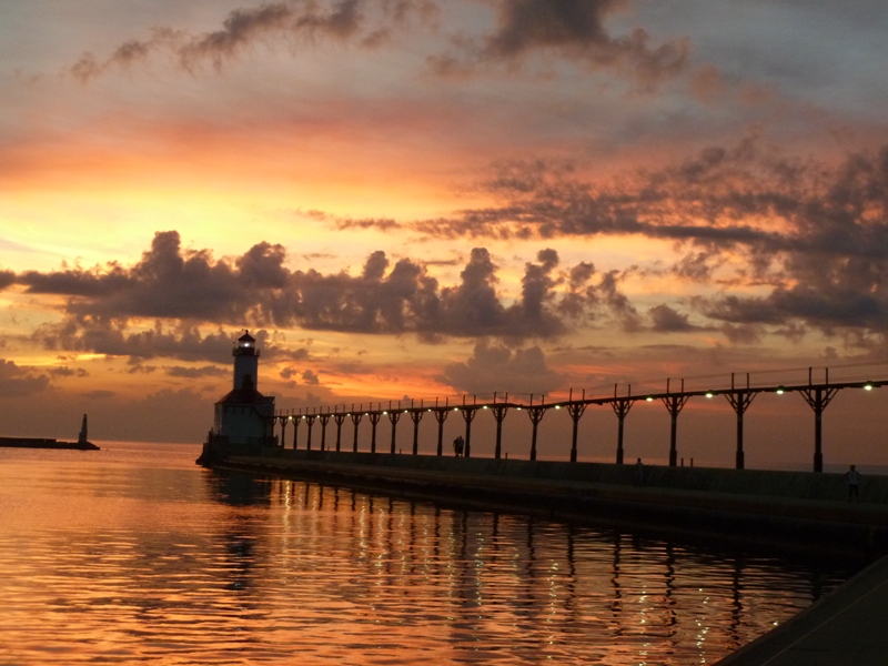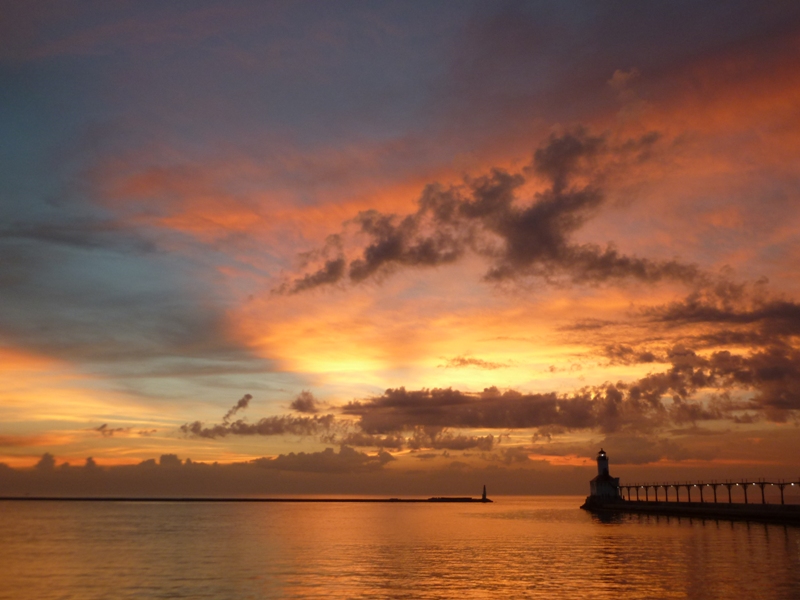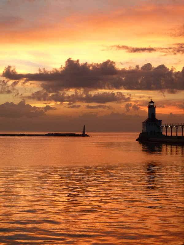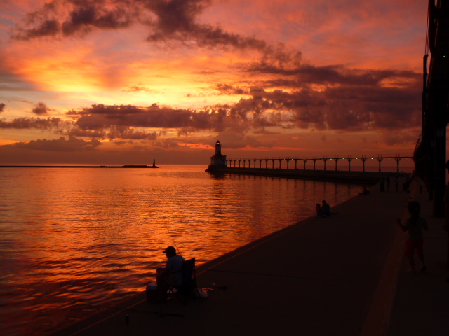» 密西根湖 灯塔 沙滩 晚霞 垂钓 太美了 忍不住多按了几张