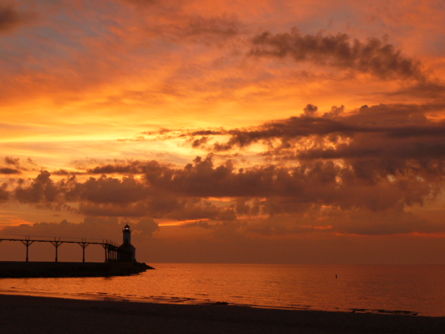 密西根湖 灯塔 沙滩 晚霞 垂钓 太美了 忍不住多按了几张