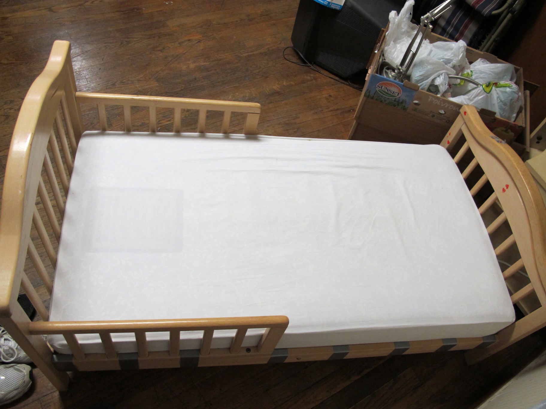 木质婴儿床 带床垫 床的边架如图有一条裂缝 但不影响使用
