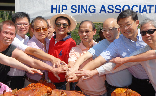最難得有兩位德高望重的僑領,一位是來自傳統僑社,達九十高齡的堂叔,林鈞堂老先生,一位是來自海外中山學社的創辦人,韋玉華老教授,及很多社團主席朋友們,林西河堂,龍崗親義公所,海晏公所,梅氏公所,黃氏公所,李氏公所等,真是濟濟一堂,有百五人之多,十分熱鬧,由切燒豬儀式開始,協胜公會蔡錫鋒主席致歡迎詞,嘉賓致詞,至協胜公會陳羨韶主席答謝詞,都是在溫馨,愉快,融洽,友好情況下進行 的。