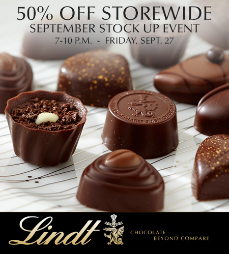 Villagio located on Level 2, above Saks Fifth Avenue OFF 5TH芝加哥奥特莱斯内的著名巧克力店 Lindt, 9 月27日全场半价!全场半价优惠,只限9月27日当晚(7 pm - 10 pm)