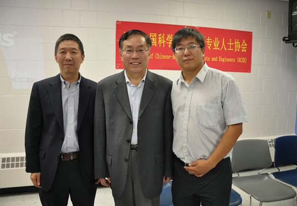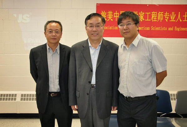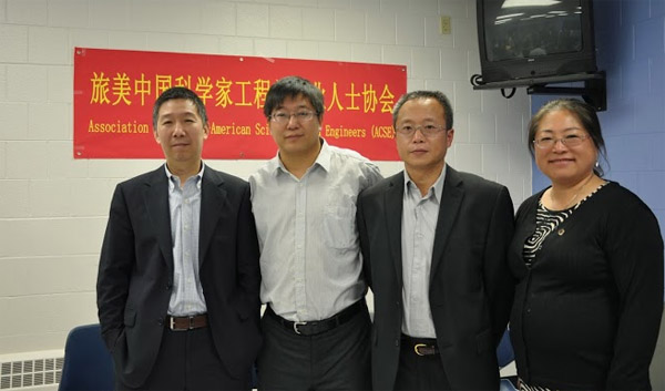 科工专麦迪逊分会会长蒋勇(左二)与从芝加哥远道而来的总会会长倪陈平(左一)、理事长潘卫(右二)、副会长梁锟