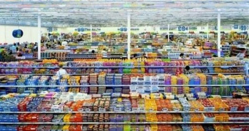 第六位:Andreas Gursky(安德烈亚斯·古尔斯基)《99 Cent IIDiptychon》(《99美分》)(2001),2007年2月在伦敦苏富比拍卖会拍得334.456万美元。作品贯彻了摄影师对于现代社会的捕捉,以宏观壮阔的角度透过摄影展示出来,这幅以超市商品层层围困、色彩斑烂的画面,展示人们被定义在“消费”这种生活模式之中。