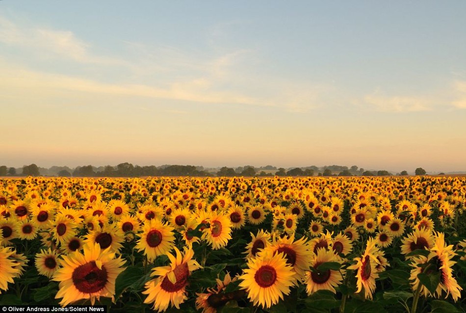所谓自古英雄出少年,6岁的英国小男孩奥利弗-安德里亚-琼斯用自己行动再次印证了这句话。从日出和日落时分的向日葵田到薄雾笼罩的山峦,再从波浪冲击海堤的海岸线到被洪水淹没的堤道,奥利弗用自己的镜头记录下一系列令人惊异的壮观景象。黎明时分的向日葵田。