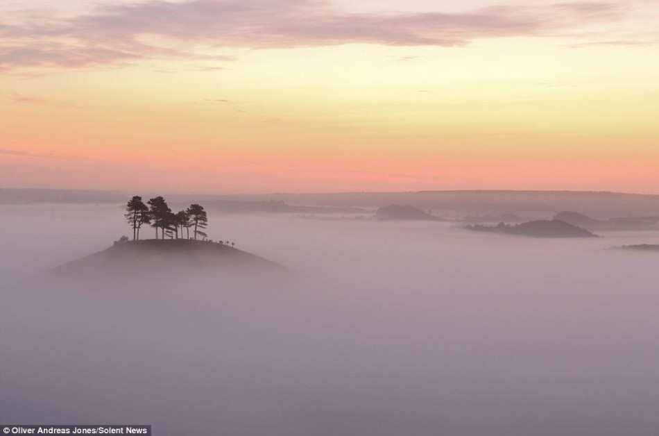 马克现年42岁,家住汉普郡的戈斯波特。他开设了一家职业婚纱与风景摄影店,是拍摄日出和日落的专家。他的儿子显然也有类似的天赋,这也就是为什么这位骄傲的父亲如此热衷于带儿子到英国各地采风。图为多塞特的希蒙德斯伯里,科尔莫斯山笼罩在薄雾之中,平添了一份神秘色彩。