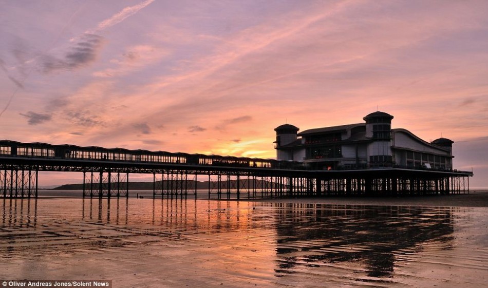 滨海威斯顿的格兰德码头,沐浴在黎明的第一缕阳光中。