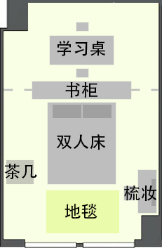 装备:门口有木质鞋架,浴室有1500瓦吹风机黑色豹纹浴帘,厨房有1个电饭锅1个烧水壶1个慢炖锅4个炒菜锅2把刀若干餐具烧饭完全够用,储藏室有熨衣板电熨斗,客厅与厨房将有门窗分割,客厅有一个宜家立灯|一个木质四层架子|一盏射灯|一张床|两张桌子|一张实木椅子|一个25格的宜家大柜子|一张绿色宜家地毯|两个分割帘子|一个梳妆镜|,拎包入住。