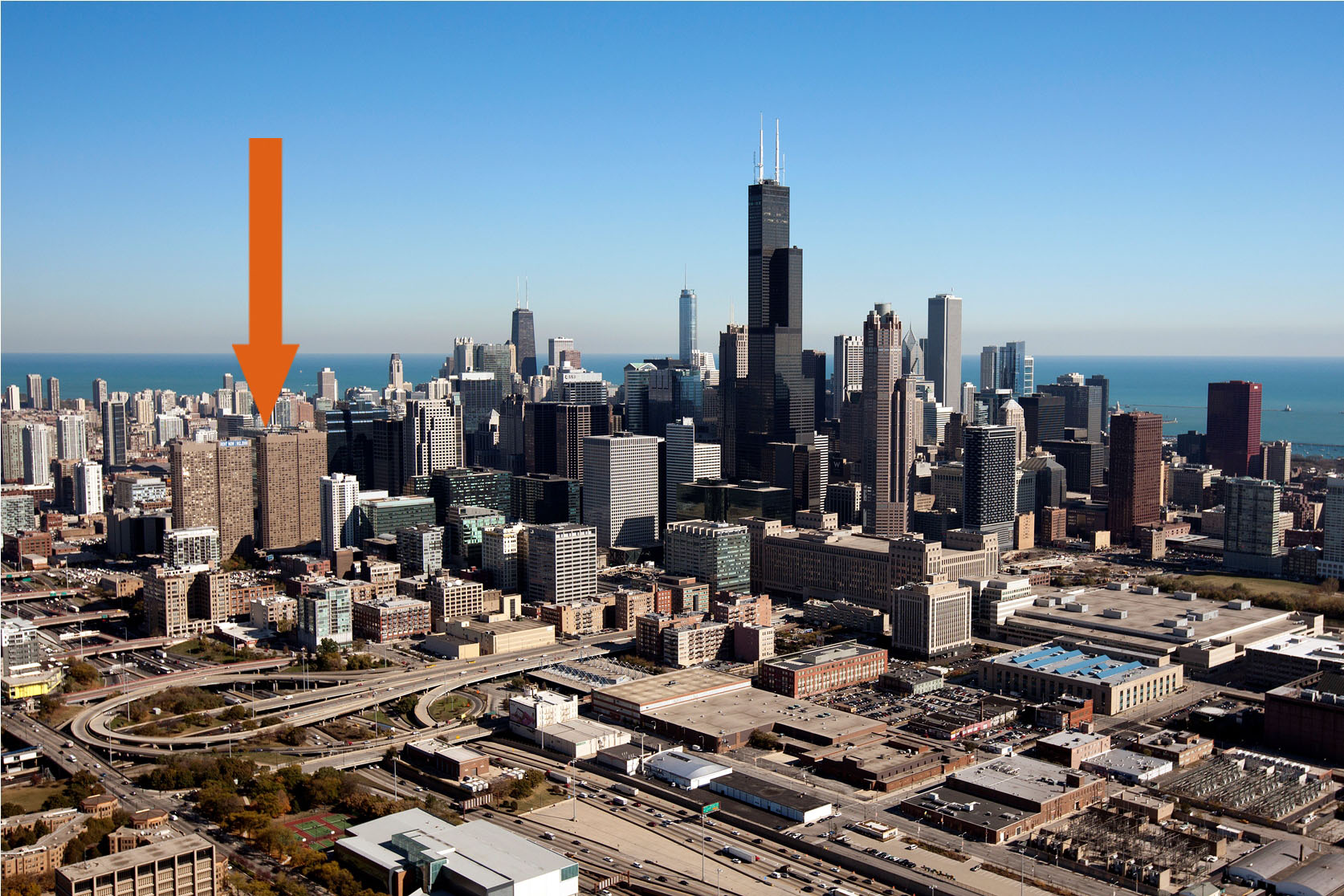 因室友单飞,转租Downtown内Loop区,Presidential Tower35层的一室一厅中的大空间28平米|坐北朝南|客厅,享有开敞Sears Tower芝加哥夜景
