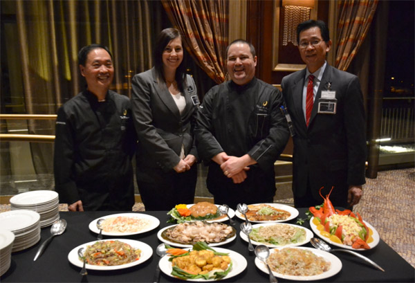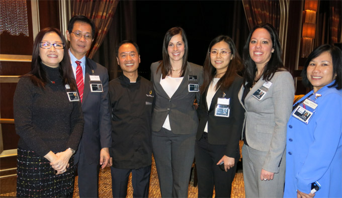 马蹄铁副总裁珍妮弗盖奥(Jennifer Galle)、亚裔市场部经理Eva Li 率领该赌场亚裔团队,日前在马蹄铁赌场“七星俱乐部”(Seven Stars Lounge)举行新闻发布会,介绍了新近加盟的中餐大厨李德明,以及近期活动。