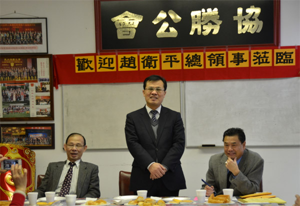 报道】赵卫平总领事新春团拜,1月22日拜访南北华埠众多社团,并强调在新的一年中,领事馆将与侨界“多来往”、“多走动”,倾听侨界心声,更欢迎大家为改进领事馆服务工作多提宝贵意见。