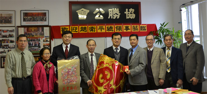 图# DSC 0872:赵卫平总领事(左三)新春团拜一行拜访华人互助会,右三为互助会创办人黄怀德。