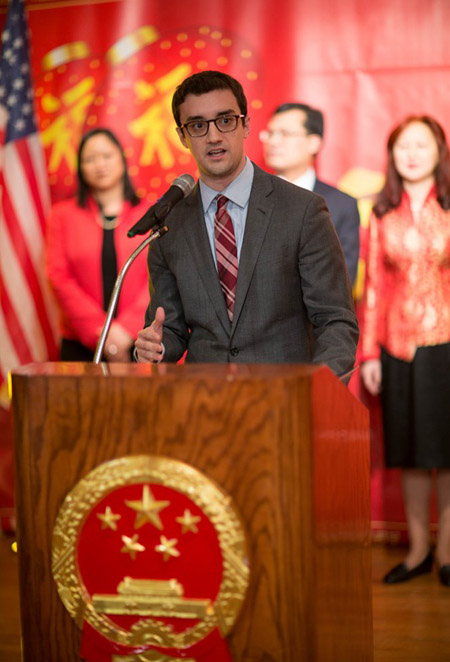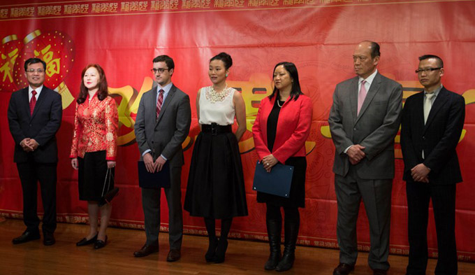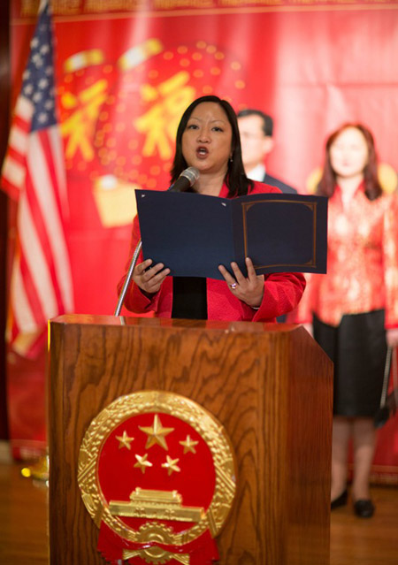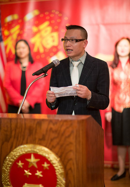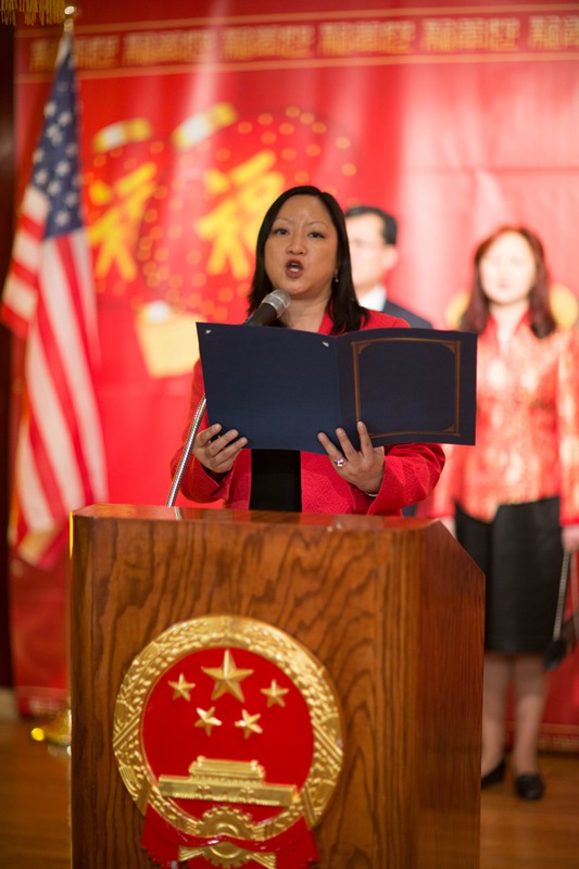 芝加哥市长特别代表致辞,并再次向大家宣布芝加哥市政府将在全城范围内推出庆祝中国新年的系列活动