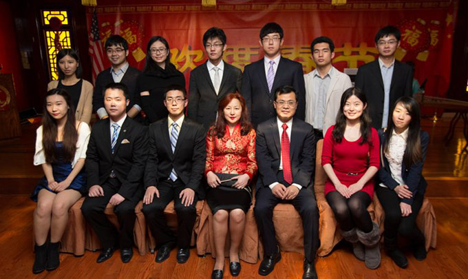 总领事夫妇与来自芝加哥大学、UIC,IIT,SAIC等芝加哥高校的中国留学生们合影留念