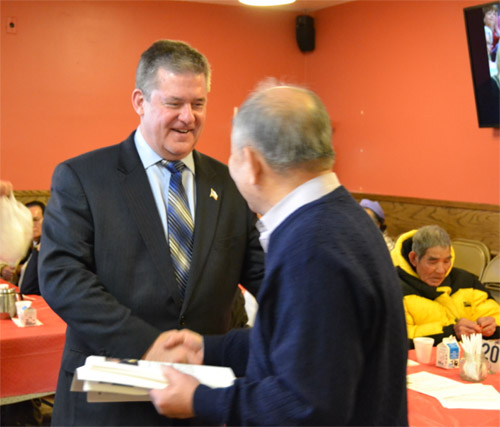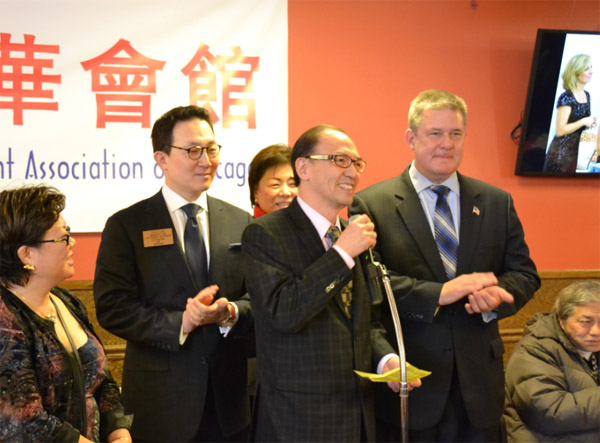 中华会馆主席刘国新首先致辞,他对卢瑟福财长的到访表示热烈欢迎。在农历新春即将到来之际,卢瑟福还向长辈鞠躬致礼,并向中华会馆赠送象征新春吉祥的利是红包。卢瑟福表示, 当年他在竞选伊州财长之时就得到华裔选民的支持,如今他决意竞选伊州州长,希望继续得到大家的支持。