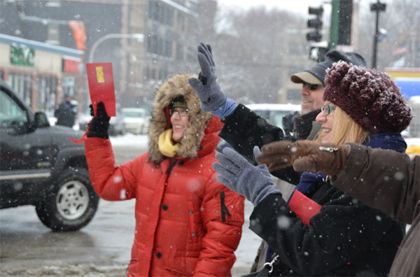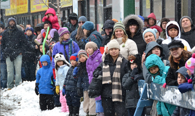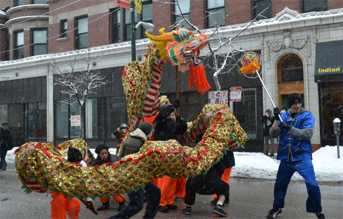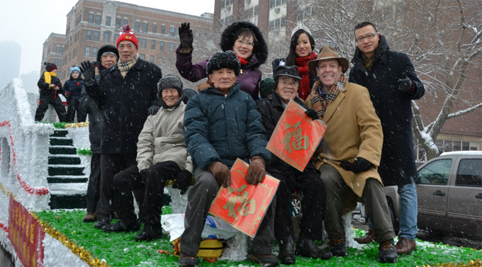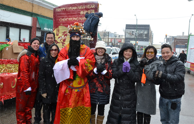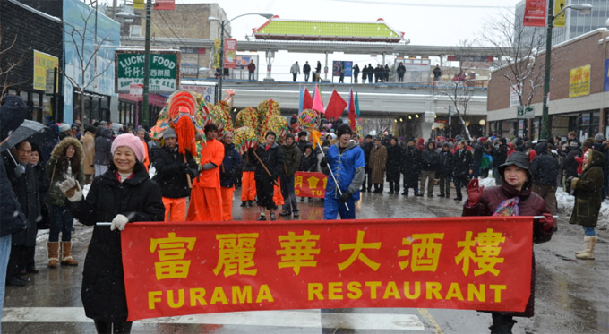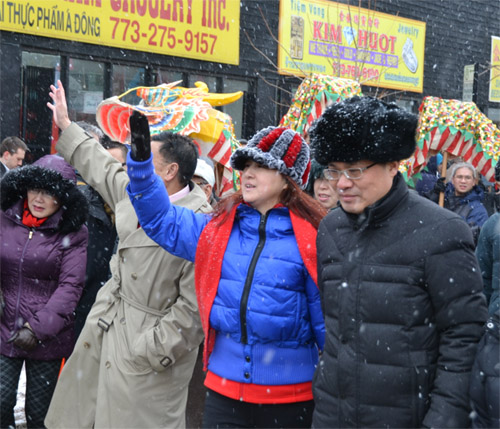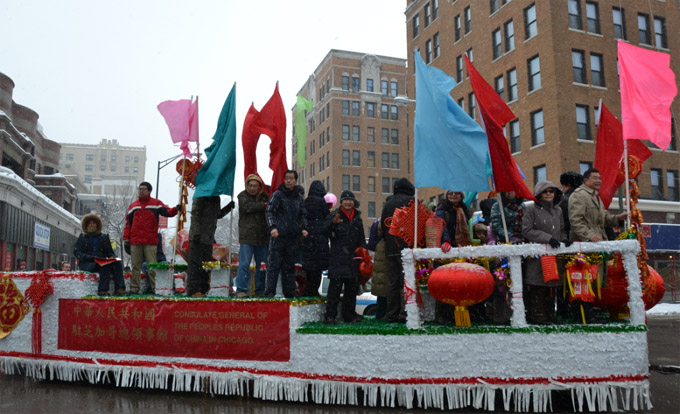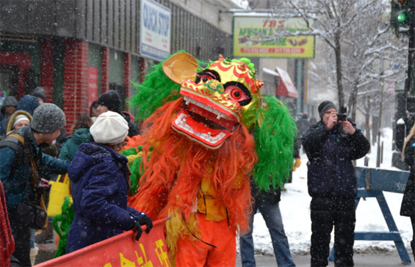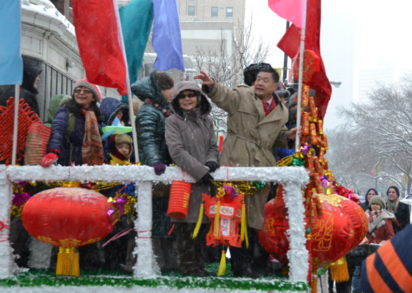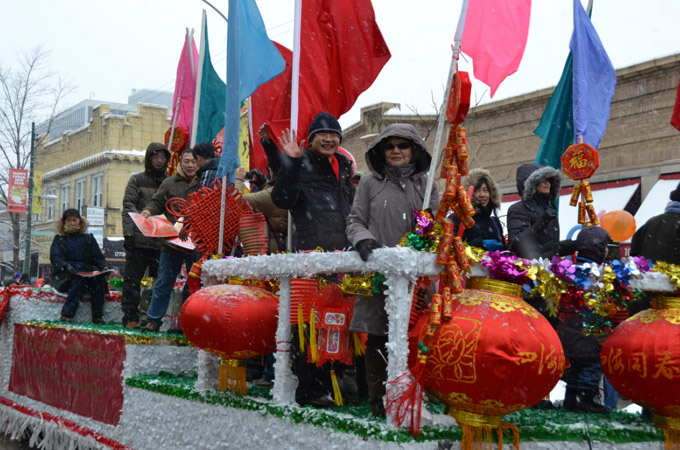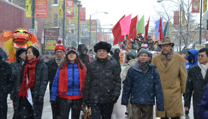 报道】由芝城协胜公会主办的北华埠春节游行,2月1日在北华埠隆重举行。由海峡两岸代表、主流嘉宾、南北华埠侨团友好、各界商家及机构组成的游行队伍,冒着大雪,向沿街致予马年新春的祝福与问候。