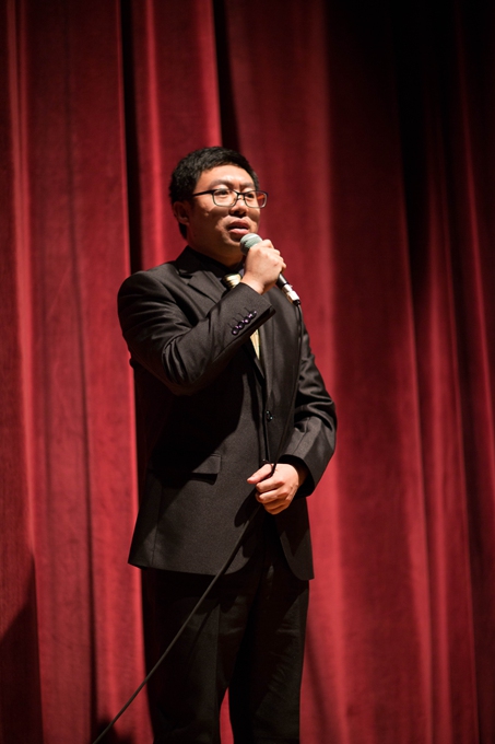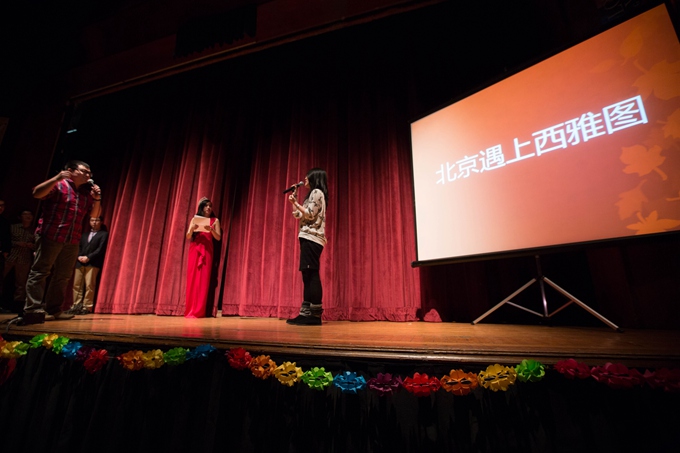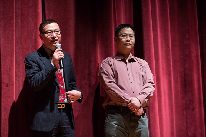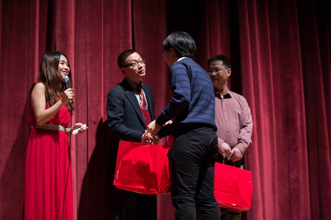 嘉宾抽奖,左为晓军美食集团董事长胡晓军,右为《芝加哥侨学网》创办人Samuel Zheng