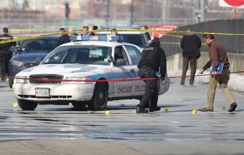 图为时候警方在现场调查取证 (图片:Chicago Sun Tmes)