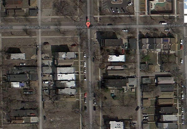 警匪飙车追逐、枪战的起因,是发生在Garfield Park 北边,Hamlin Ave & Ferdinard St 附近的一起枪击案。图为案发地点。
