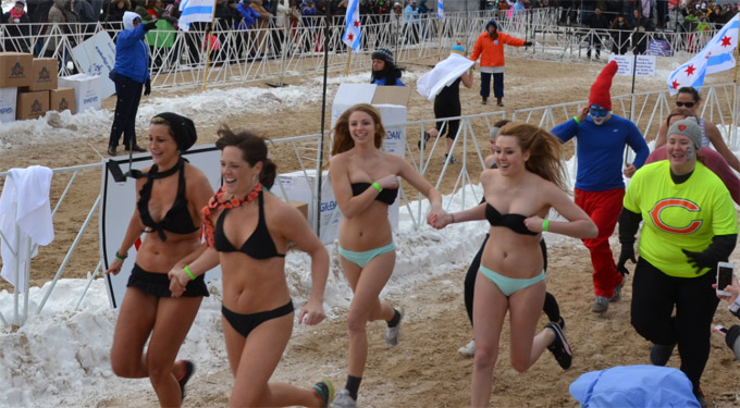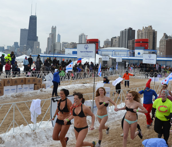 报道】漫长且索然无味的芝加哥冬日,3月2日这一天突然疯狂而刺激: 芝加哥市长伊曼纽和3000多名“疯狂人士”参加第14届“芝加哥极地跳水”(Chicago Polar Plunge)活动,大家在摄氏零下12度的天气,前仆后继跳入密西根湖,挑战体能极限,同时为慈善公益募款。