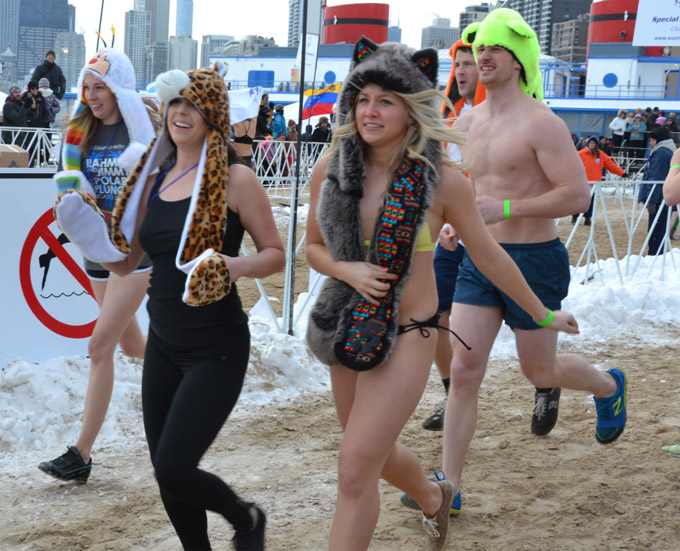 在市长和吉米法伦带头极地跳水后,众多勇敢的参与者“前仆后继”,众多猛男靓女,仅穿着裤头、比基尼,狂呼尖叫着跑向冰冷的密西根湖。而略显含蓄的参与者,则穿着单衣加入,体验芝加哥式的冬日刺激。这次活动宛如万圣狂欢,众多芝加哥市民身着万圣节的装扮入场,金刚狼、小黄人、星球大战、古罗马战士,各类装扮的电影角色,纷纷欢呼尖叫,体验刺激。
