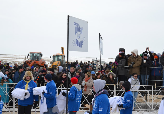 由于天气极度寒冷,每位参与者在水中的时间都在一两分钟左右,参与者狂呼尖叫着跑回岸上,都有志愿者立即给予加热的毛巾,活动现场也有众多临时帐篷供参与者取暖和换衣。芝加哥警察局、消防局的志愿者,则一直穿着防寒淌水服站在冰水池中以防不测,现场也有救护车随时准备。