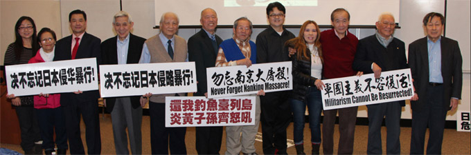 司徒劍會長、陳羨韶主席、林雪吟主席、副主席關澗源、副主席鄧衍輝、葉恆青會長、劉元澄 、張一程、副會長顏弘二紛紛發言,抗議日本首相安倍參拜靖國神社,控訴日本軍國主義對各國人民造成的傷害、反對日本軍國主義的復辟、維護世界的和平。宗鷹、非馬、 孫益重博士、 王堅、張大衛、曹樂群醫生和陳思都以文稿發言,精神感人。(图文:芝加哥和统会)