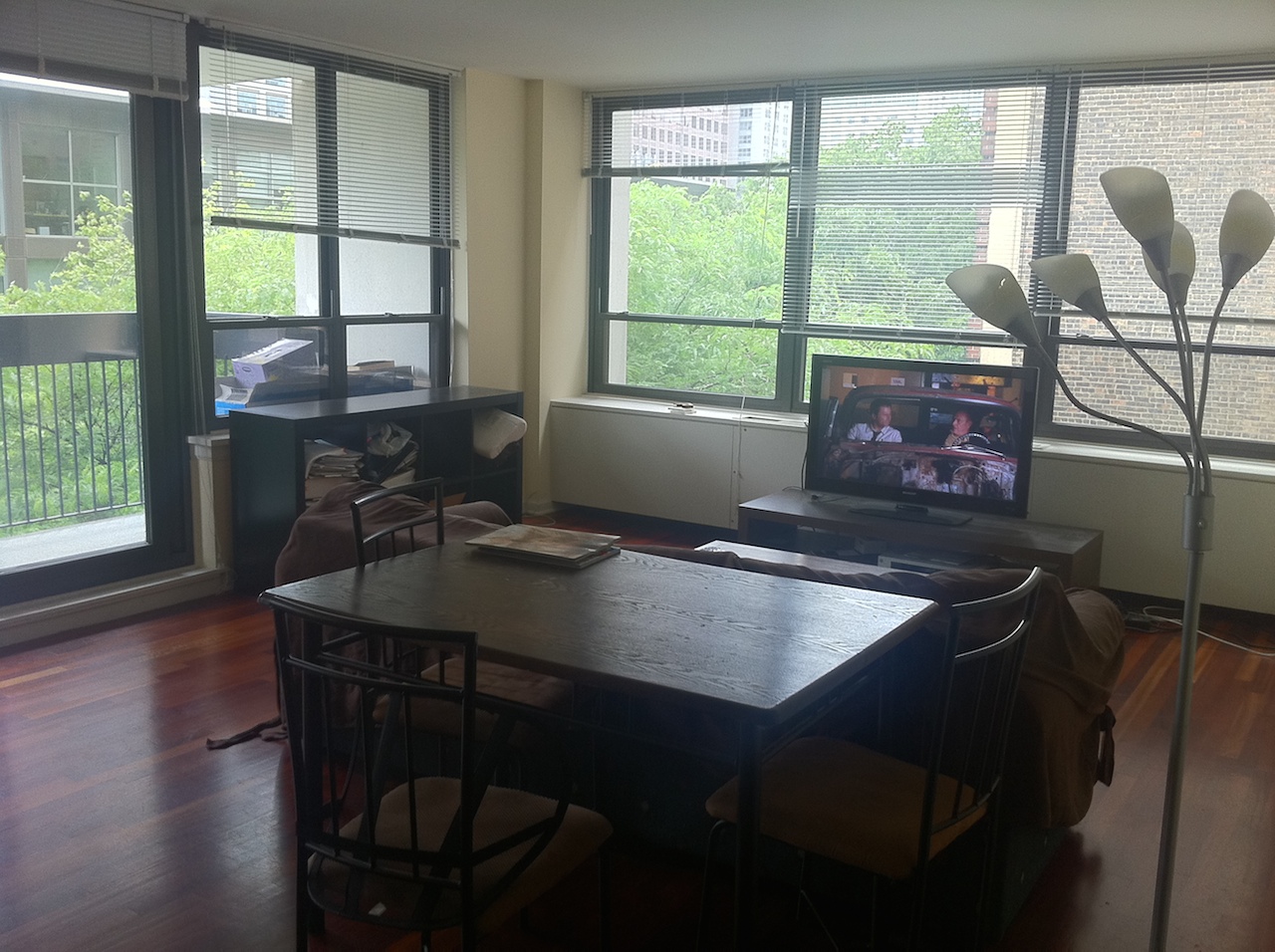The master bedroom in a fully furnished apartment located at the heart of Streeterville is available from May 1st, 2014. Starting days are negotiable.The rent for subleasing will be $1350/month. The current occupant is moving out of Chicago, and your roommate is a very easy-going Asian graduate student. I enjoy having friends over and occasionally weekend house guests and would welcome you do the same. Non-smoking, respectful, and generally clean and tidy.