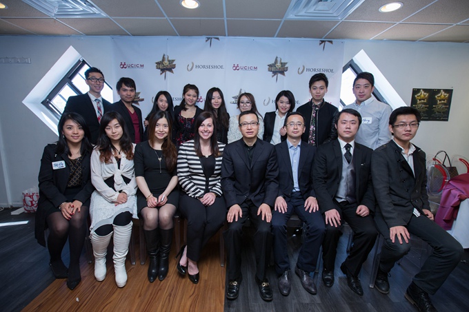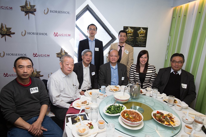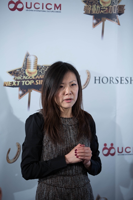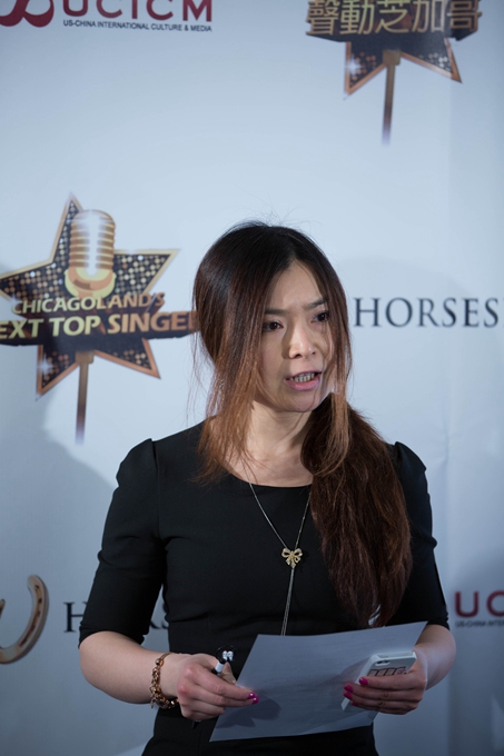 马蹄铁(HORSESHOE)和UCICM联合举办的第一届“声动芝加哥”大赛在华埠广场老四川饭店举行新闻发布会,活动总监致辞,8名参赛选手亮相。