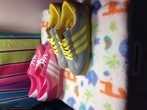9.2双5号(大陆36号)的全新运动鞋2双,如图,粉色黄色各一双,牌子是在淘宝上买的,质量很好,共$12刀出。