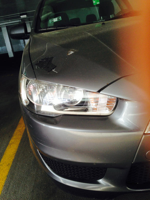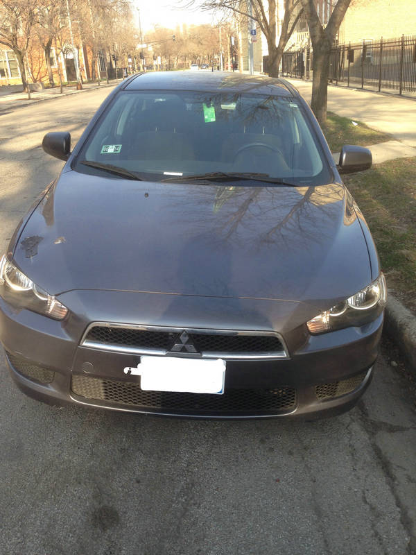 08年三菱Lancer 里程数9万mile。没有事故,clean title, 车本身condition是非常好的,除了车前盖有一个小洞。。一会儿上图。。KBB Fair condition报价6470。车前盖的洞是我价位低那么多的主要原因。 但是因为发动机盖是两层的,下面一层完好无损,所以不需要担心水或者雪漏进下面。 至于洞的由来,我也不是很清楚。因为我是停在路边的,在一个风雪交加的夜晚,第二天早上醒来就发现这个洞在车盖上面了。后来估计有可能是铲雪车的前铲子戳到了我的车前盖。如果你是出于代步买菜需要车的话,这真是最佳的不二选择啦。