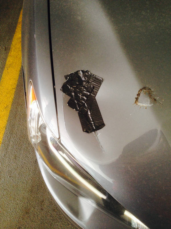 Again,车的状况(发动机,机油,轮胎,电池)等是非常好的, 我都是做定期检查和更换的。这个洞对驾驶没有任何影响。如果你觉得不好看,即使想去修这个价位也是不亏的。因为我已经把那部分折换进我的价格里面了。当然IT IS STILL NEGOTIABLE!!。 如果您有兴趣的话,请email 我