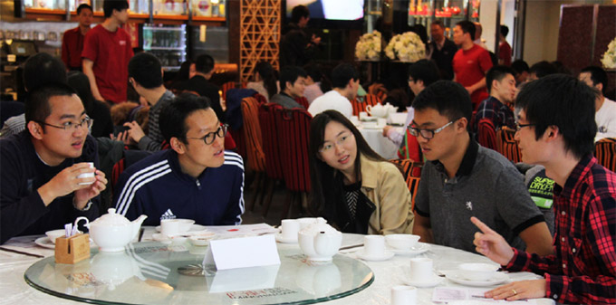 芝加哥侨学网记者张慧报道】大芝加哥清华校友会5月17日在中国城名轩餐厅举行2014年度校友大会。餐叙、抽奖、卡拉OK飙歌,100多位清华校友们欢聚一堂,气氛热闹温馨。校清华友会今年全新推出的“行业交流会”,按专业领域让新老校友同桌共叙,不仅加深校友间的交流,促进对行业动态的了解,更让校友会成为互助平台,一位即将毕业的学弟就通过与同桌学长的学术交流拿到了新的工作机会。