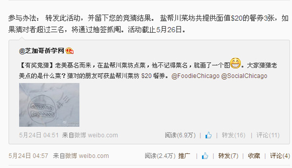 《芝加哥侨学网》微博发起的有奖竞猜活动。