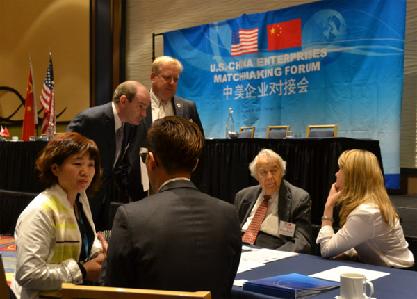 “2014中美中小企业合作周”的首站活动、“投资美国 配对合作”中美企业对接会,6月4日在芝加哥市中心举行。来自广东、浙江、陕西、湖北、山东等中国各地的80多家中小企业管理高层,与30多家美方企业代表进行面对面洽谈。