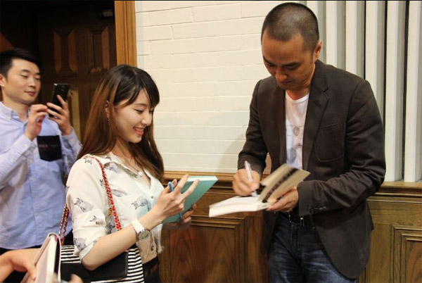 演讲结束之后飞速冲上来跟冯唐合影的粉丝们