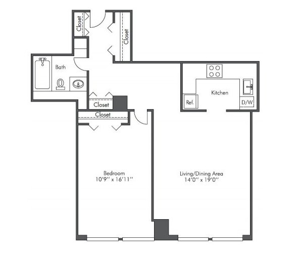 7月上中旬可入住,prefer长租。屋子很大很正,总面积759 Sq. Ft. 窗户朝正南,采光非常好。(附房型图)