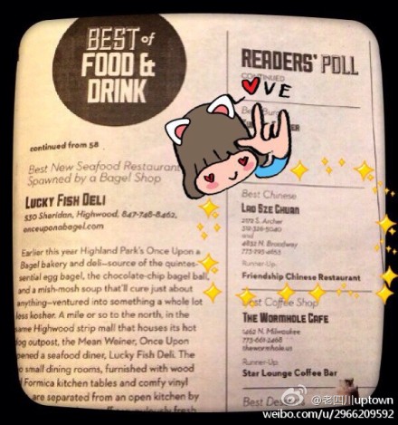 杂志Readers',著名的美食周刊。感激再一次把老四川评为"the best drink& food in the city" 大伙快来品尝吧。好多正中道地美食等着你!