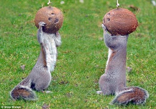 日前在英国汉普郡一户人家的花园内,一对贪吃的小松鼠脑袋被卡在椰子壳内。这一幕被这户人家的主人拍摄下来,其场面令人忍俊不禁。