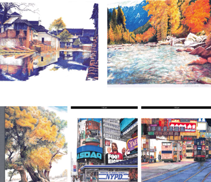 陈钧先生本次参展作品共有11幅钢笔画和马克笔画,钢笔画有: 四川笋溪河畔,安徽木雕楼,大连广场的俄罗斯建筑, 四川福宝镇街景, 四川福宝镇远眺。 马克笔画有: 胡杨树, 香港湾仔街景, 南方水乡,秋季的亚当斯河,纽约街头。