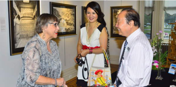 画家陈钧(左)与当地展馆主任 Siobhan Cottone (中),画展主办人陈梅(右)合影留念