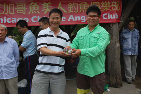 酒足饭饱之后,进入到颁奖环节。首先为今年三月底在Bassmaster钓鲈大赛大学组比赛中获得不俗成绩的韩宇、陈秋润颁奖,这是该赛事自1967年开赛以来,第一次有中国人参加。参赛的两位留学生都来自伊利诺伊大学香槟分校,其中韩宇同学更是鱼美人钓鱼俱乐部版主。在随后的专访中,他表示自己喜欢钓鱼不是为了“收获”,而是“探索”,是不断寻找和解密不确定性和未知性的过程。每次钓上来的鱼他都会重新放生到水里。接下来是为2013年秋,俱乐部自己举行的钓皮皮大赛的获奖选手颁奖;随后大家为要结婚的两对渔友和喜得贵子的两位渔友表示了热烈祝贺。