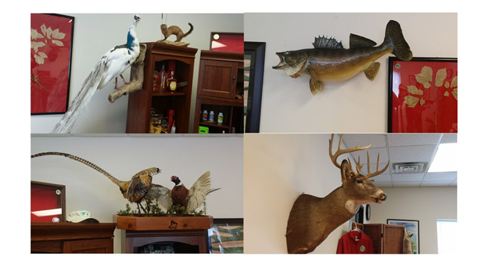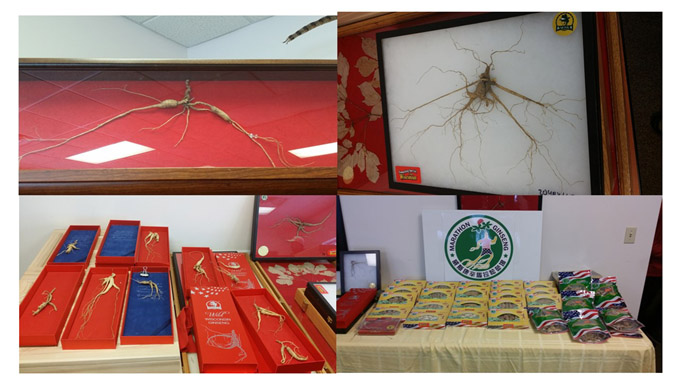 次日一早,在酒店吃完早饭,带着美女导演去了马拉松参场(Marathon Ginseng Gardens)办公室。马拉松参场,位于威斯康辛州华沙市(Wausau, WI)西郊,每年去北密看枫叶的华人朋友,都会中途在华沙休息,顺道参观马拉松参场。进入参场办公楼,一进屋就看到两条巨大的野生梭鲈(walleye)标本挂在墙上,还有野鸡、狐狸、松鸡等标本,展示着地处森林边缘的优越地理优势,野趣十足。