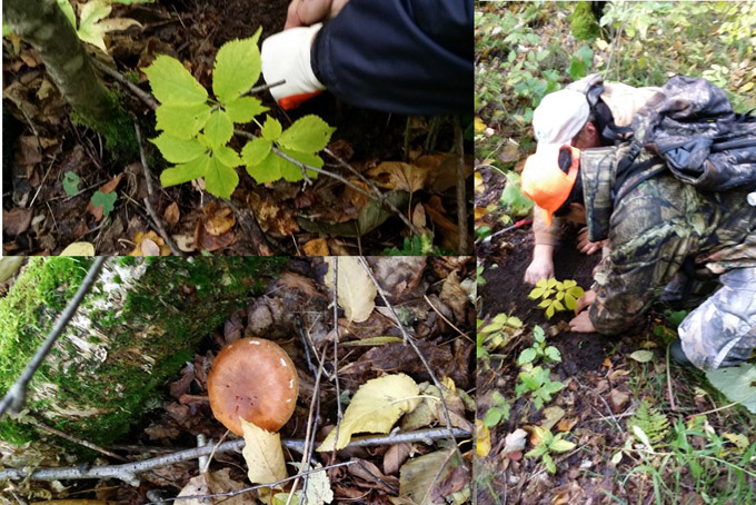 下山比上山难走,老把头一边看指北针,一边带领我们下山,小把头举着一个巨大的蘑菇告诉我们,如果这个蘑菇是红色的,那么可以卖到200多美元一磅,极其稀有。