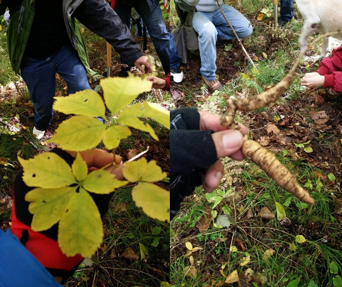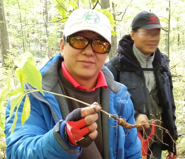 北京美女小心翼翼的把参装进袋子里,大家的情绪顿时高涨起来,把头说,在这里多找找,因为有参种子落下,附近应该还有。果然在不远处找到两棵,可惜一棵不够年龄,不能采摘,另外一棵可以采摘了,大约10年参龄。到了山顶,开始下山,这时候11个挖参人,一大半都挖到了自己的野参,来自威斯康辛本地的朋友,每次总是先把采挖野参的机会让给从北京远道而来的朋友,以尽地主之谊。 大家采到野生人参,又和当地向导学到好多关于威斯康辛花旗参的知识,脸上的笑容,如同秋阳下的漫山红叶一般灿烂。