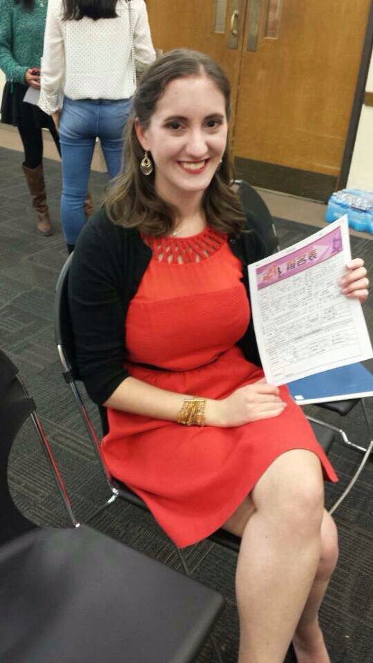 在面试嘉宾等待区,小编随机采访了几位正在为面试做准备的嘉宾。其中最惹眼的就是这位土生土长的美国美女Rachel,她在芝加哥当地的一家专业企业印刷公司做项目管理的职务,客户都是国际500强的大型公司。最让小编跌破眼镜的就是,Rachel的中文真是好到让我这个原装中国人都自愧不如呢,一口正宗的北京胡同腔,让我聊着聊着就忽略了这张高鼻梁深眼窝的欧美范儿长相,还以为是跟邻家姑娘在聊天呢。她身边的中文老师一直对Rachel赞不绝口,说她上辈子一定是个中国女孩儿。非常期待能在《非诚》的舞台上看到Rachel的身影,希望她能在中国找到心仪的那个他,谱写一段国际版的爱情故事。