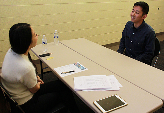 漫长的等待之后,终于轮到了重头戏-编导亲自面试。从中国专程越洋跨海飞过来的节目编导尽然有序的有序的组织着整个面试过程,面试总体是保持着简单且轻松的风格,通过向各位面试嘉宾询问一些简单的问题来了解面试嘉宾的基本情况。一来一回中,面试嘉宾也渐渐放松了紧张的心情,有说有笑的与编导聊起来。