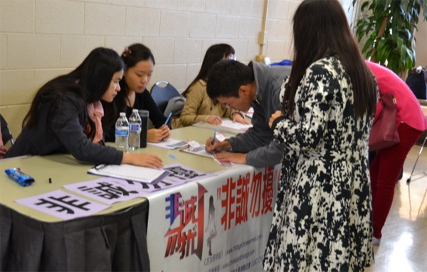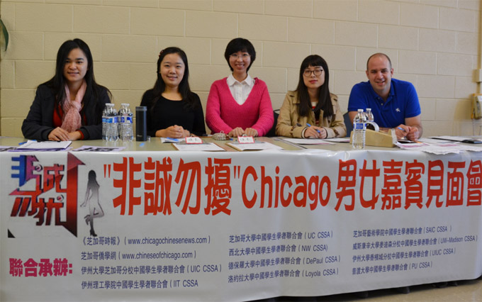 中国最知名大型生活服务类节目《非诚勿扰》于2014年秋伴随着一万多海外华人华侨的强烈需求,终于在伊利诺伊大学芝加哥分校UIC 学生中心重磅来袭。前两年的美东、美西专场分别创下了《非诚》创立节目以来的最高牵手纪录,本年度《非诚》美中专场也被寄予了很高的厚望。短短一天的面试时间从上午11点到下午5点,报名人数达到100多位,惊人的是1:10的男女比例。不难看出在当今社会,女生为了追求自己心中那份真爱,都勇于踏出第一步站到聚光灯下,向全世界宣布自己心中那份坚定的信心与执着。在此,小编不得不为这些勇敢的姑娘们点个大大的赞!
