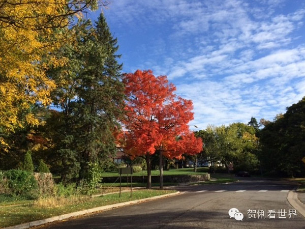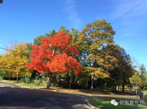 驶出安娜堡,终于进入了大巴车身上所展现的“五彩缤纷”。这真的是秋天!红色的枫叶索性红得彻彻底底,夹杂在金黄的银杏叶中,衬着蓝色的天空,我真的是被这份美美醉了。驰骋在前后几公里没有车的路上,偶尔出现几只慵懒的小绵羊和机敏的小松鼠,我也不得不停下来让道,好让他们慢慢的走过,因为他们实在是太可爱了!
